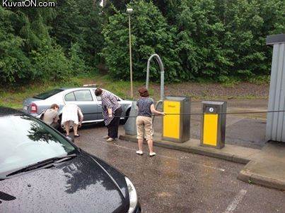 4 women inflating a car tire